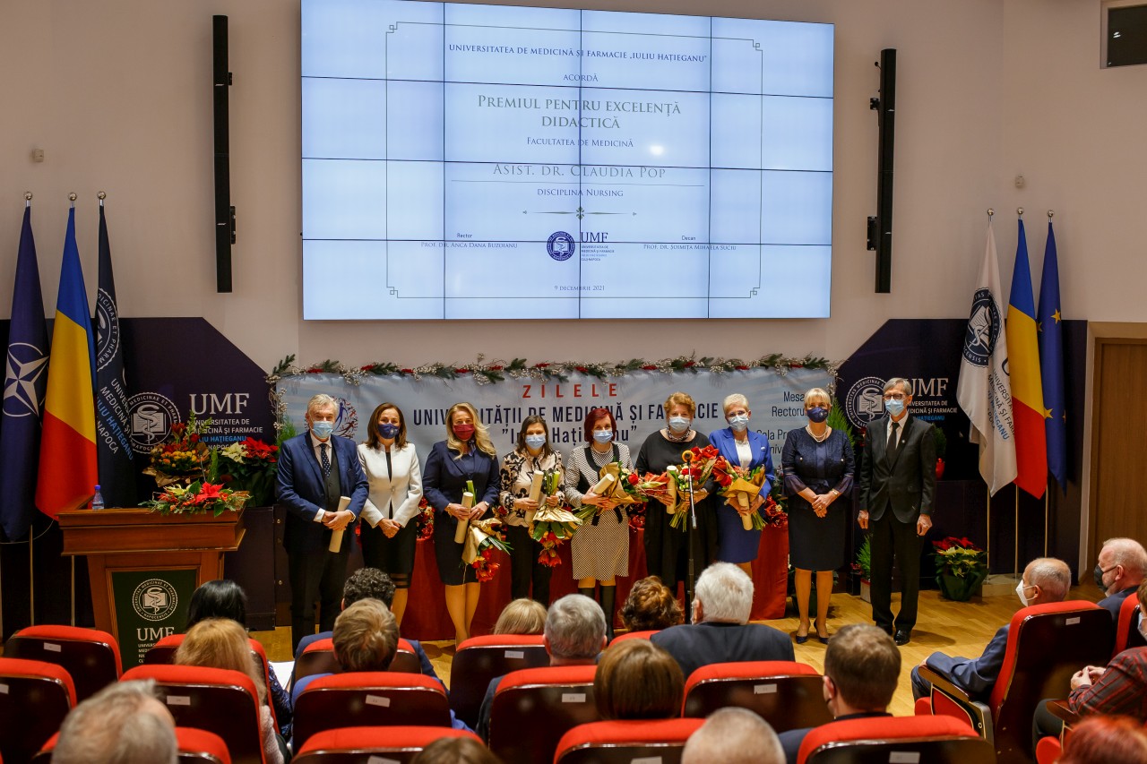 Universitatea de Medicină și Farmacie „Iuliu Hațieganu” Cluj-Napoca sărbătorește, zilele acestea, 102 ani de învățământ medical în limba română. În cadrul manifestărilor prilejuite de Zilele UMF „Iuliu Hațieganu” 2021, joi, 9 decembrie, a avut loc Gala Premiilor Universității, în cadrul căreia au fost premiate performanţele şi realizările deosebite din ultimul an ale cadrelor didactice, cercetătorilor și studenților.