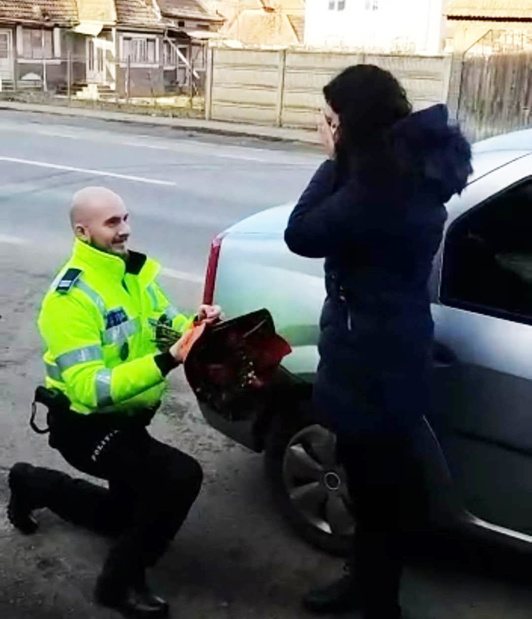 Vlad Adrian, un poliţist din Câmpia Turzii, și-a cerut iubita în căsătorie într-un mod inedit.