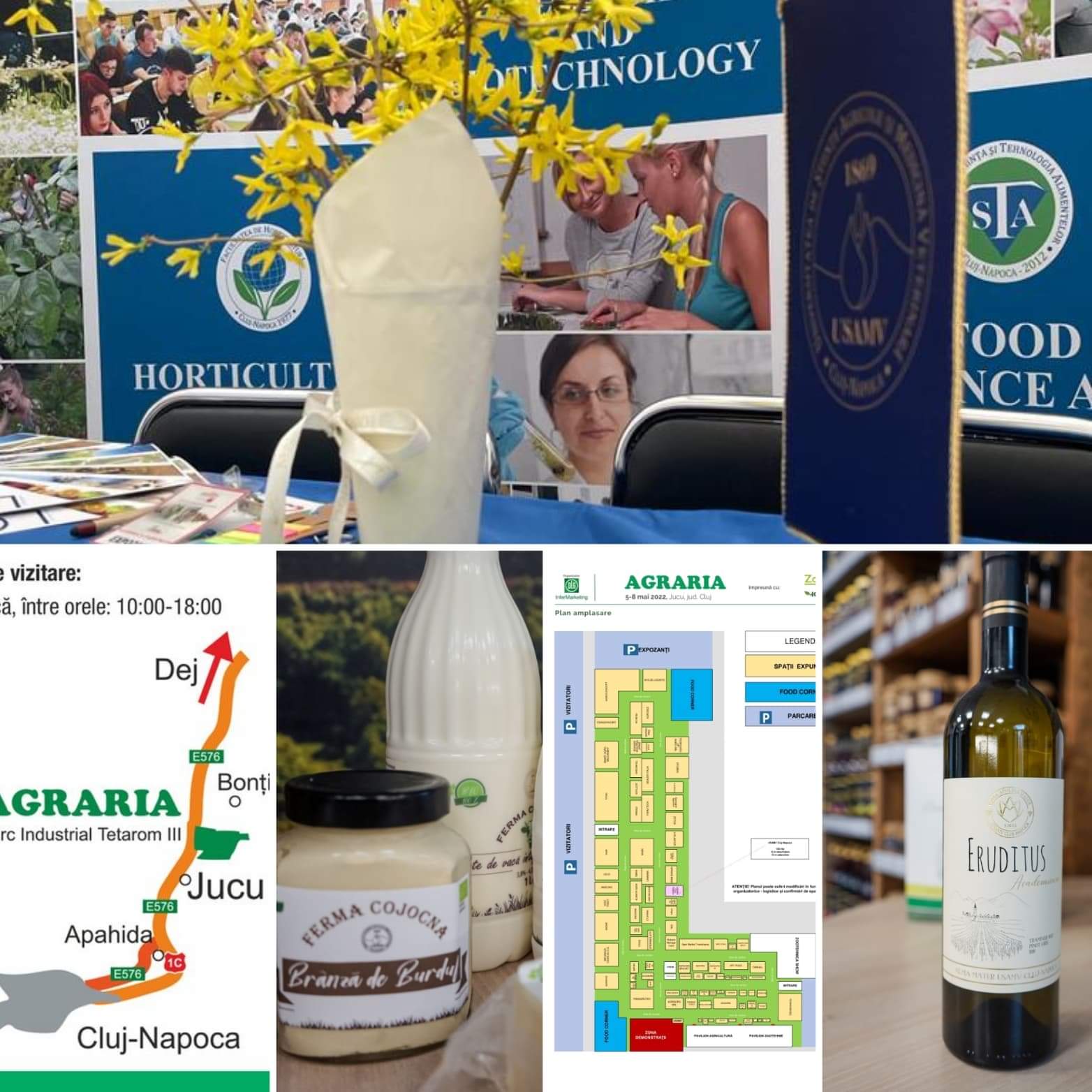 Universitatea de Științe Agricole și Medicină Veterinară (USAMV) Cluj-Napoca anunță participarea, în calitate de partener, la Târgul Internațional de Agricultură, Industrie Alimentară și Zootehnie Agraria, în perioada 5-8 mai 2022, la Jucu. Participarea USAMV Cluj-Napoca este construită pe mai multe segmente, în prim-plan fiind standul educațional, împreună cu sesiunile de prezentări din cadrul forumului ale specialiștilor noștri de la Facultatea de Agricultură – Prof. dr. Roxana Vidican și Conf. dr. Ovidiu Ranta, respectiv de la Facultatea de Horticultură – Prof. dr. Mugurel Jitea și Șef lucr. dr. Valentin Mihai. Între temele abordate se numără: facilitarea transferului de cunoștințe, valorificarea produselor locale și regionale, întărirea rețelelor de comunicare cu fermierii sau noțiuni aprofundate despre agricultura viitorului, precum și demonstrații practice în domeniul protecției plantelor. Și studenții noștri vor avea o prezență numeroasă la eveniment, circa 50 fiind voluntari în cadrul acestei ediții.