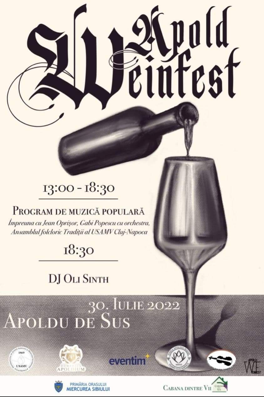 USAMV Cluj-Napoca, partener la ”Apold Weinfest, cu vinuri șiproduse din fermele propriiUniversitatea de Științe Agricole și Medicină Veterinară (USAMV) Cluj-Napoca va participa, în premieră, la ”Apold Weinfest”, la Apoldu de Sus din județul Sibiu, acolo unde se află și plantația viticolă a universității – Vinea ApoldiaMaior. Evenimentul va avea loc sâmbătă, 30 iulie 2022, cu începere de la ora 13.00, iar intrarea în incinta festivalului va fi permisă cu o oră mai devreme.