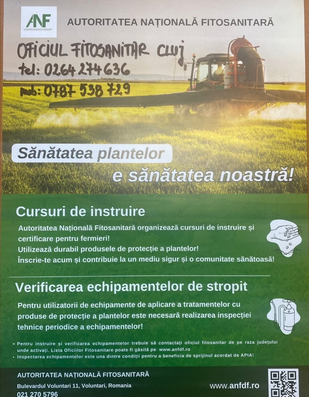 In perioada 16-20.06.2025, va avea loc în comuna Ceanu Mare, verificarea echipamentelor de aplicare a tratamentelor fitosanitare.