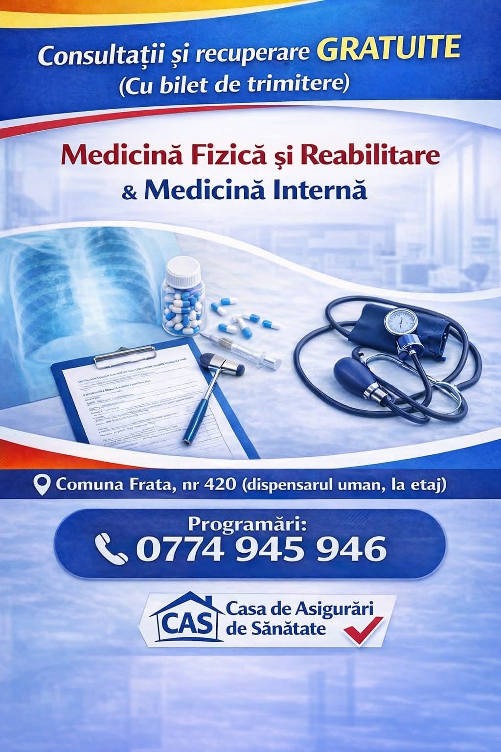 La Centru Medical Frata primești consultații și recuperare GRATUITE, decontate prin CAS, cu bilet de trimitere.
