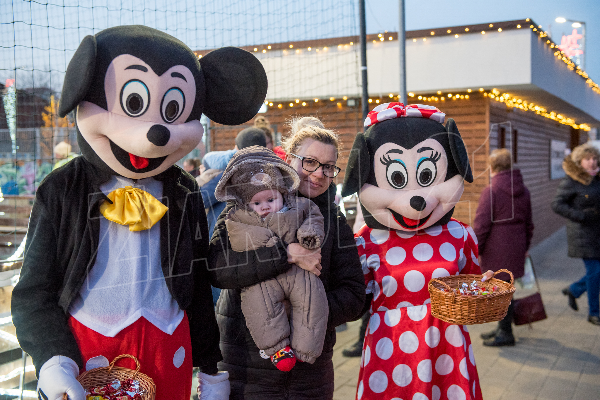 Autoritățile locale au făcut și în acest an o surpriză plăcută copiilor iar cei prezenți la deschiderea patinoarului au primit de la Mikey și Minnie Mouse au împărțțit dulciuri celor prezenți.