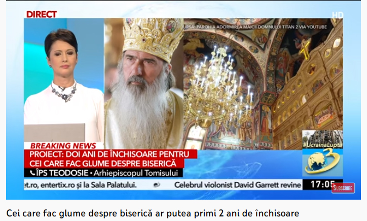 Dacă Ministerul Justiției, ca și în Polonia, ar lua această atitudine, noi nu vom solicita. Noi, ortodocșii, suntem foarte toleranți și întoarcem și obrazul celălalt, dar când se întrece măsura, iată, este bine să se oprească această avalanșă a râului, a ironiei, a batjocurei. Să fie oprite, că trebuie să trăim într-o atmosferă de armonie și de familie, nu de dușmănie și de batjocură”, a declarat ÎPS Teodosie la Antena 3.