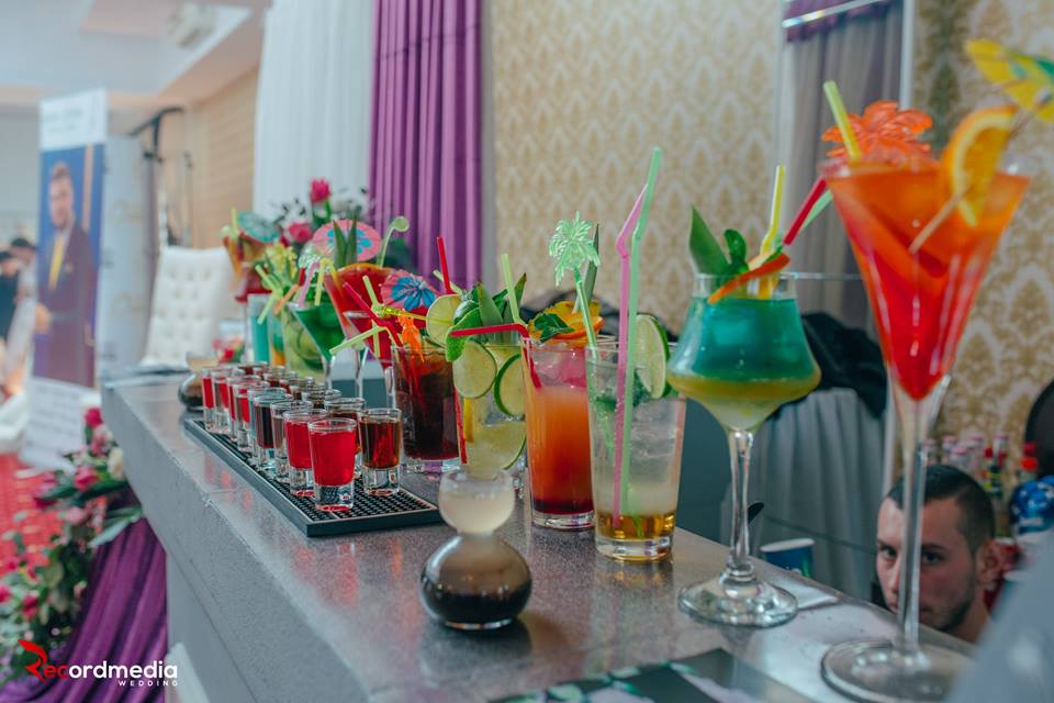 Stabilim cu clientul câteva dintre cocktail-uri și shot-uri, iar pe tot parcursul evenimentului tot ceea ce ține de băutura din bar, oamenii pot servi, fiecare cât poate duce.