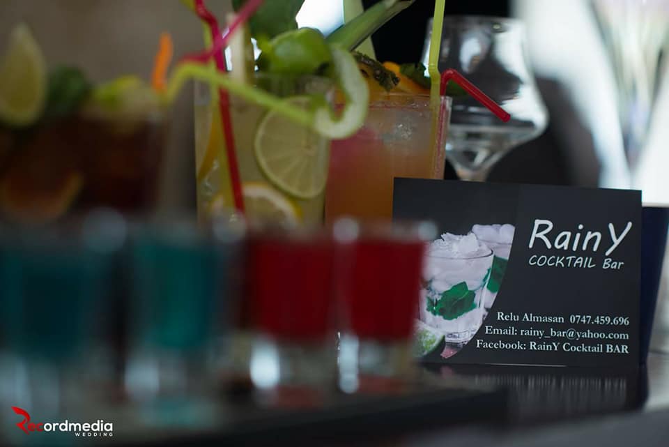 R.A: Eram la un pool party împreună cu niște prieteni și bineînțeles având niște abilități de a realiza cocktail-uri, am făcut câteva longdrink- uri și eram constrâns de faptul că urma să particip la un târg de nunți care cred că era la două săptămâni după petrecerea respectivă. Încă nu aveam un nume stabilit, inspirația m-a făcut ca în momentul în care vremea de afară s-a schimbat, respectiv a început să plouă, în mintea mea erau două cuvinte: arome si ploaie. Atunci ne-am dat seama că numele cocktail-barului să fie Rainy Cocktail Bar, o ploaie de arome într-un singur pahar.
