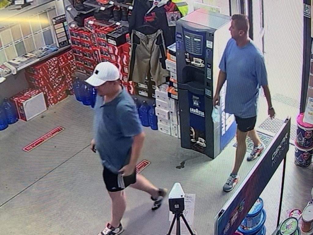 Cei doi indivizi nu au realizat că sunt filmați de camerele de supraveghere și au acționat.