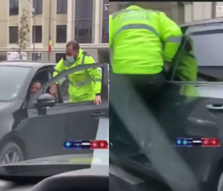 Un caz neobișnuit s-a întâmplat astăzi, 24 noiembrie, în jurul orei 15:30, lângă Casa de Cultură a Studenților. Un polițist s-a urcat în mașina unui șofer care a refuzat să prezinte documentele, bărbatul încercând să fugă de amendă. Polițistul însă nu s-a lăsat, și a sărit în mașina bărbatului pentru a-l opri.
