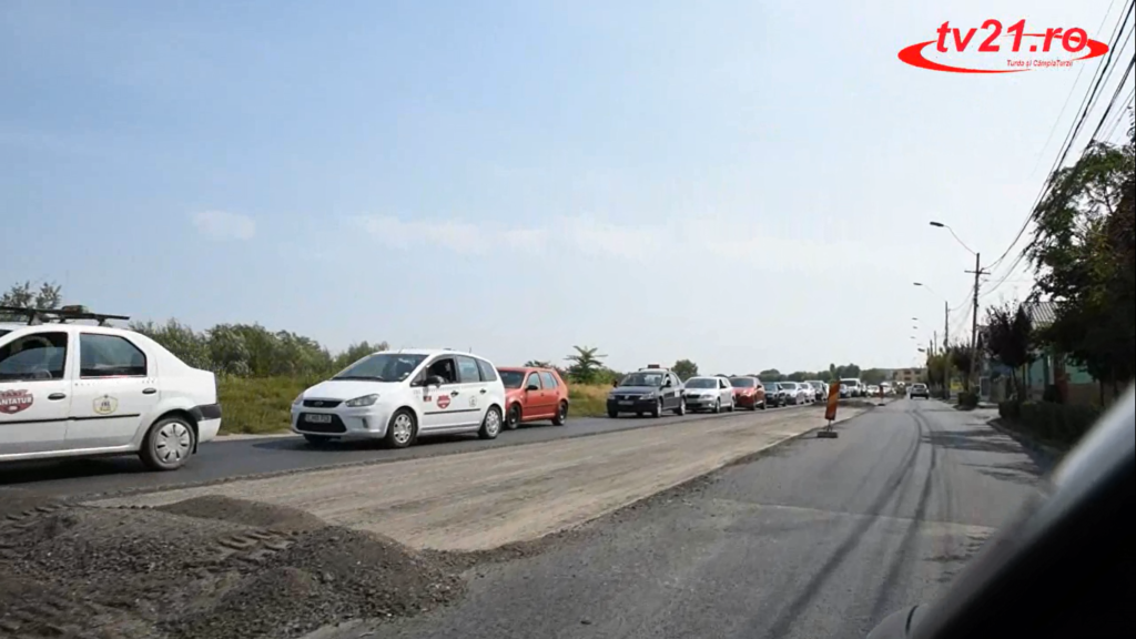 Astăzi a început frezarea, iar pentru cateva minute traficul a fost blocat, mașina de frezat fiind nevoită să ocupe prima bandă, astfel încât coloanele de maşini ajungând până în dreptul magazinului Penny.