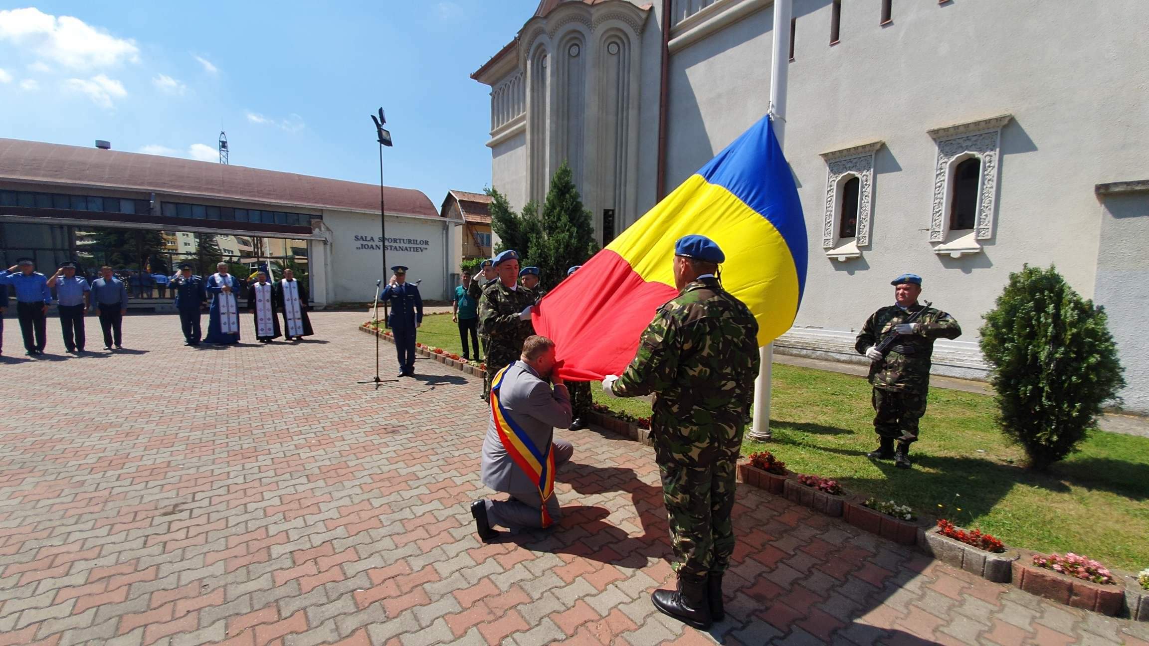 Soborul de preoții a binecuvântat Drapelul României printr-o slujba după care s-a trecut la procedura de înălţare a drapelului României pe catarg, concomitent cu intonarea Imnului Naţional al României, cântat de Fanfara Promenada din Câmpia Turzii. Manifestațiile s-au încheiat cu o defilare a detașamentului de onoare și o survolare în spațiu aerian cu 3 aeronave MIG – 21 și 3 elicoptere.
