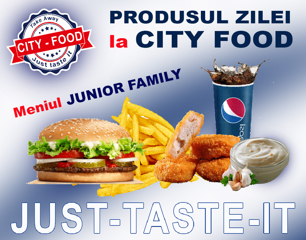 City Food vine cu o nouă propunere savuroasă pentru familii, anunțând lansarea Meniului „Junior Family”, disponibil vineri, 16 ianuarie 2026, în intervalul orar 10:00 – 20:00.