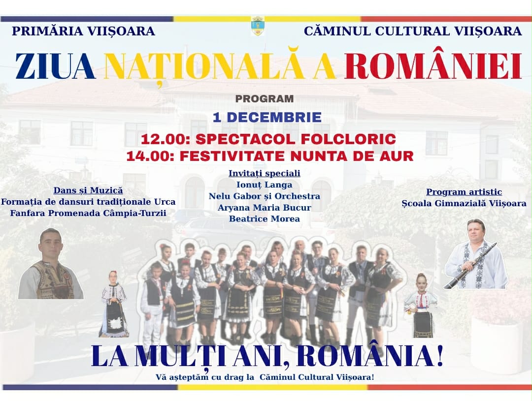 Primăria Vișoara și Căminul Cultural Vișoara îi invită pe toți locuitorii comunei să participe la evenimentele dedicate Zilei Naționale a României, care vor avea loc duminică, 1 decembrie, începând cu ora 12.00.