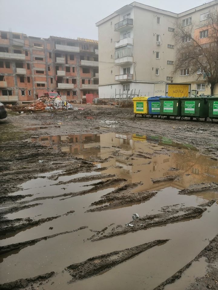 Locul unde au fost instalate pubelele de gunoi fiind total nepotrivit. Turdenii fiind nevoiți să treacă prin noroi și bălți pentru a păstra orașul curat.