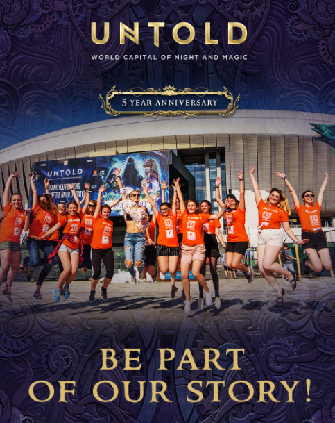 UNTOLD îți oferă șansa să trăiești alături de echipa festivalului dar și de fani, experiențe unice la ediția aniversară din acest an. Unul dintre cele mai mari festivaluri din Europa, UNTOLD, recrutează peste 1200 de voluntari. Doritorii vor avea ocazia să opteze pentru toate departamentele din cadrul festivalului iar unul dintre avantajele voluntariatului poate să însemne chiar oportunitatea de a face parte din echipa de festival a lui David Guetta, Martin Garrix, Bastille sau Dimitri Vegas&Like Mike.