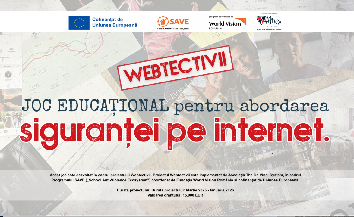Proiectul Webtectivii este implementat de Asociația The Da Vinci System, în cadrul Programului SAVE („School Anti-Violence Ecosystem”) coordonat de Fundația World Vision România și cofinanțat de Uniunea Europeană.