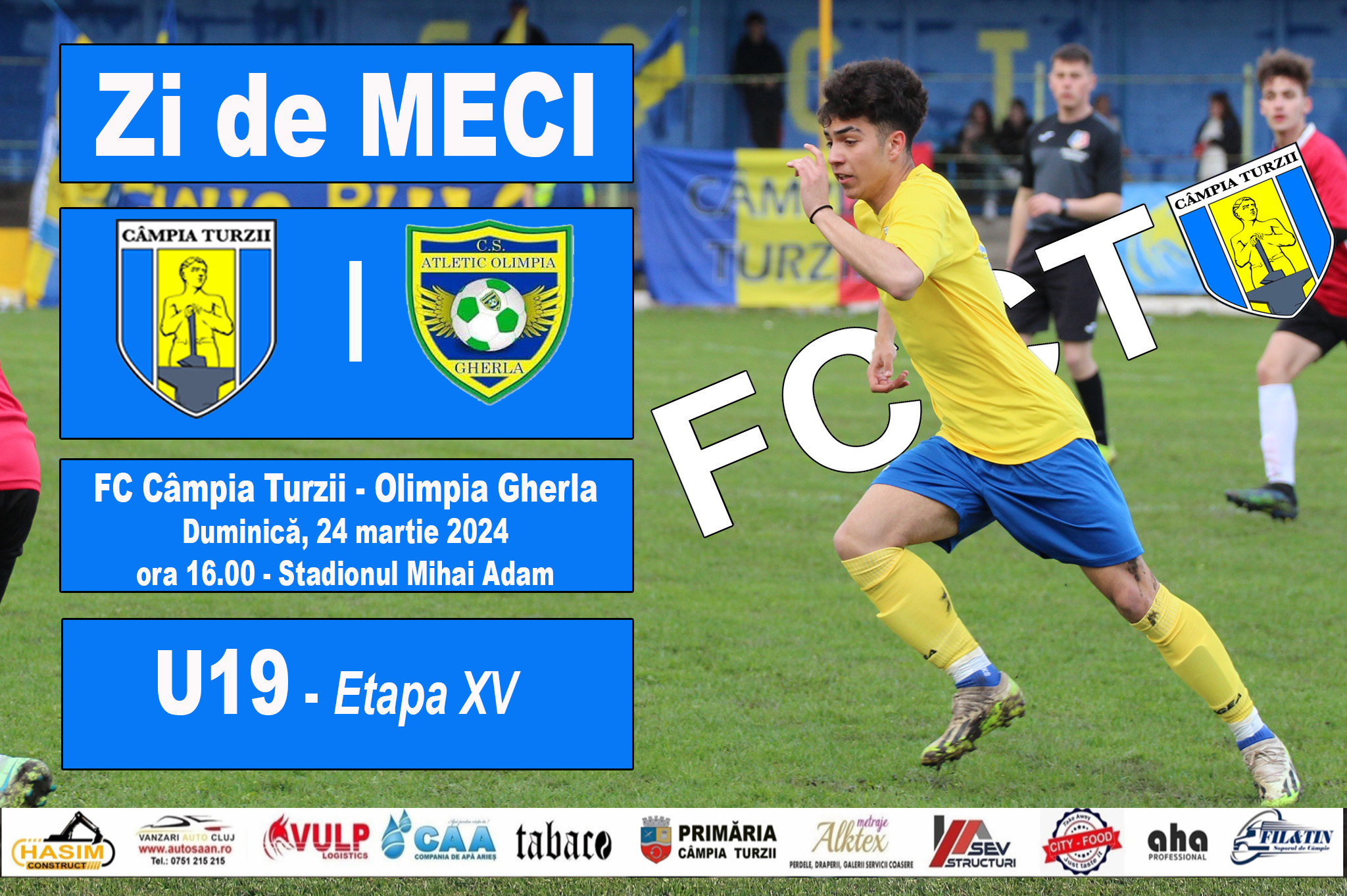 Grupa U19 de la FC Câmpia Turzii evolueaza în etapa a XV-a acasă pe stadionul „Mihai Adam” din Câmpia Turzii contra formației Atletic Olimpia Gherla.