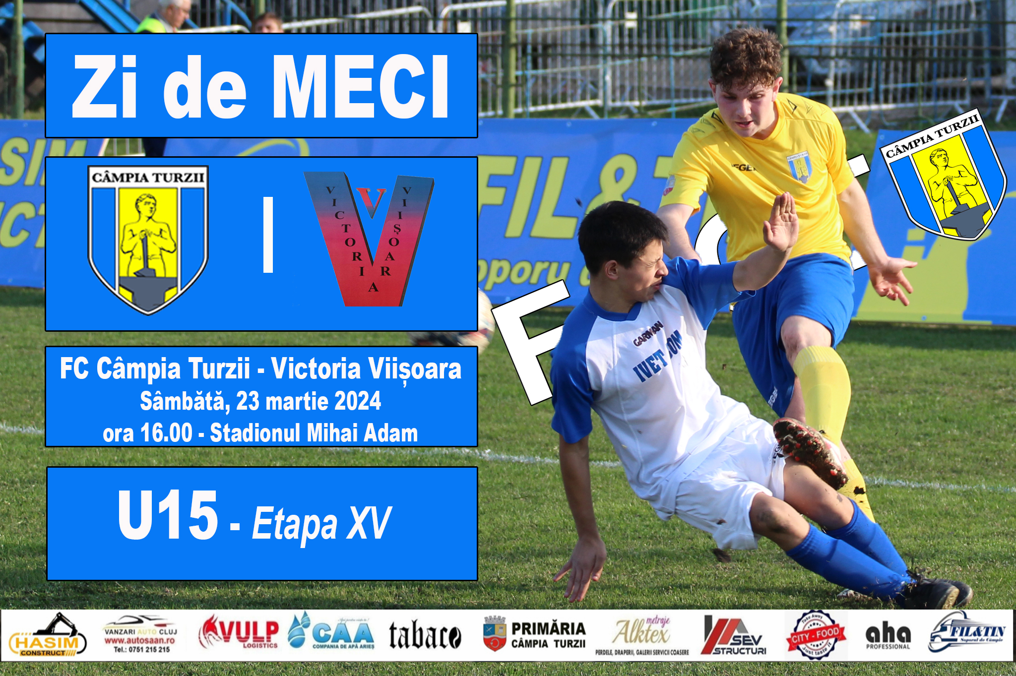 Grupa U15 de la FC Câmpia Turzii evolueaza în etapa a XV-a acasă pe stadionul „Mihai Adam” din Câmpia Turzii contra formației Victoria Viișoara.