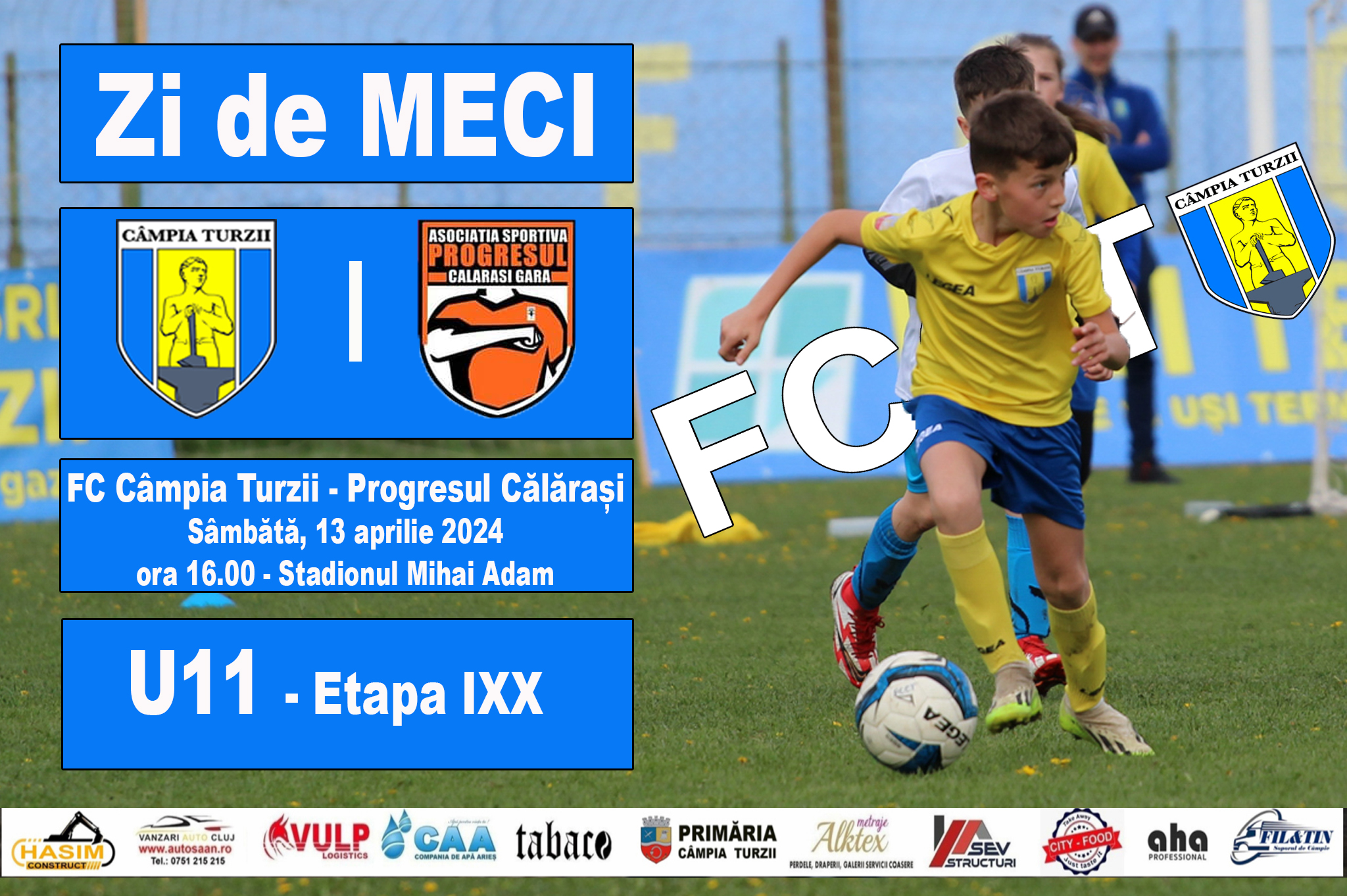 Grupa U11, antrenată de Florin Mărginean va primi vizita celor de la Progresul Călărași. Meciul va începe la ora 16.00 și se va desfășura pe Stadionul Mihai Adam din Câmpia Turzii.