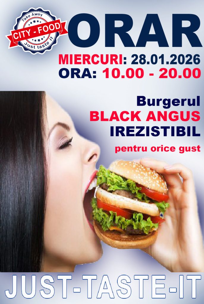Miercuri, 28 ianuarie 2026, locația va fi deschisă între orele 10:00 – 20:00, iar vedeta zilei va fi Burgerul Black Angus, unul dintre cele mai apreciate produse din meniul City Food.