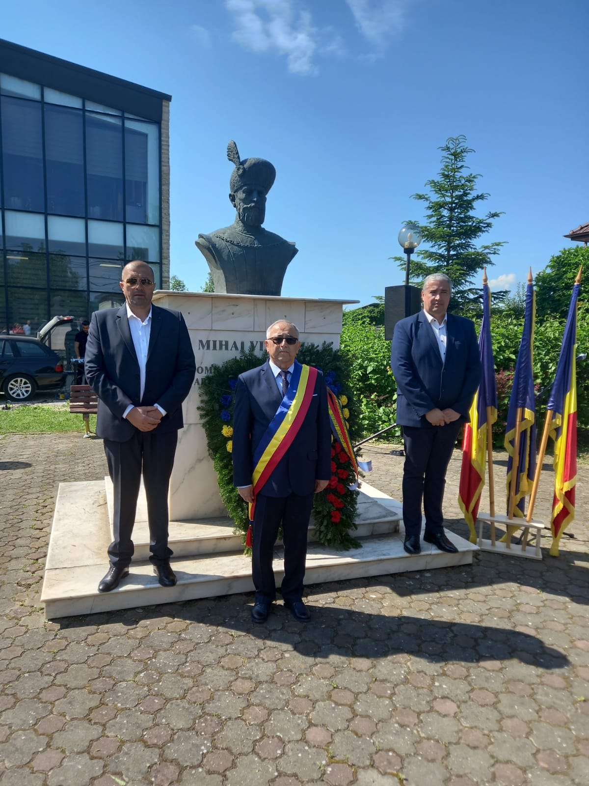 Evenimentul din comuna Mihai Viteazu s-a încheiat cu depunerea de coroane la mormântul lui Mihai Viteazu, de lângă primăria comunei.