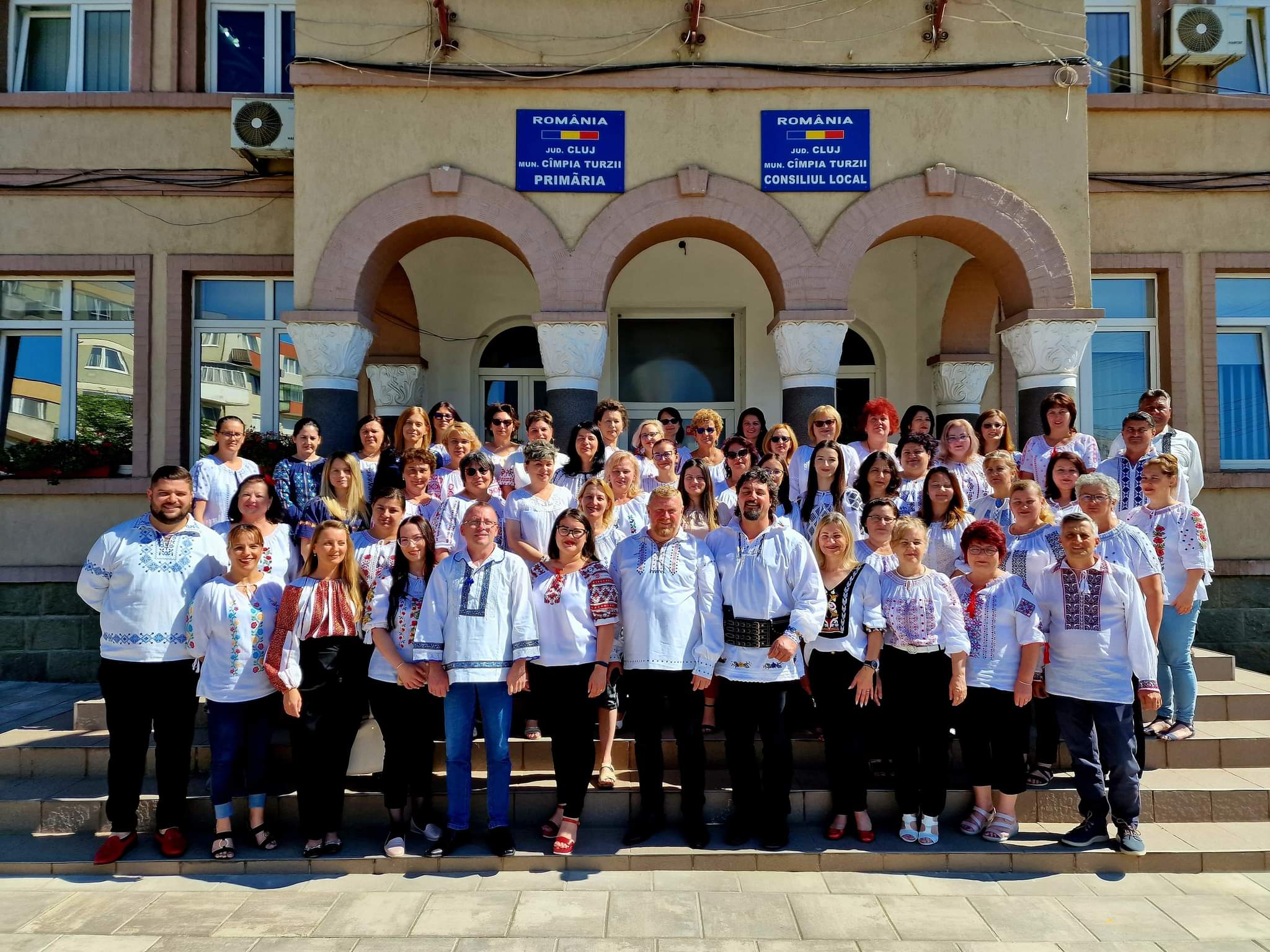 𝙕𝙞𝙪𝙖 𝙄𝙚𝙞 a fost marcată de administrația publică locală din Câmpia Turzii. Angajații din toate serviciile primăriei s-au reunit în fața troiței din fața instituției și au marcat momentul, purtând ia tradițională cu mândrie și demnitate. Dorin Lojigan, primarul municipiului Câmpia Turzii și Sabin Ghemeș, viceprimarul municipiului Câmpia Turzii, recunoscuți fiind pentru iubirea față de elementele tradiționale, purtând, cu diferite ocazii, cămașă tradițională românească, au avut frumoasa inițiativă de a încuraja subalternii promovarea celui mai prețios accesoriu pe care românii îl au ca moștenire.