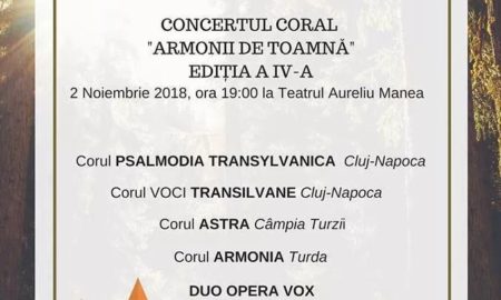 În 2 noiembrie de la ora 19:00 ansamblurile corale Armonia din Turda, Voci Transilvane, Psalmodia Transylvanica din Cluj Napoca și Astra din...