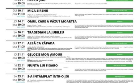 Spectacole memorabile, spectacole pentru copii, spectacole de improvizație, comedii savuroase, toate își găsesc loc în programul lunii noiembrie la Teatrul Aurelia Manea...