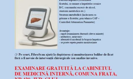 Aveți probleme hepatice sau doriți să le preveniți? Vă așteptăm la FibroScan gratuit în comuna Frata, nr.420, la cabinetul de medicină internă...