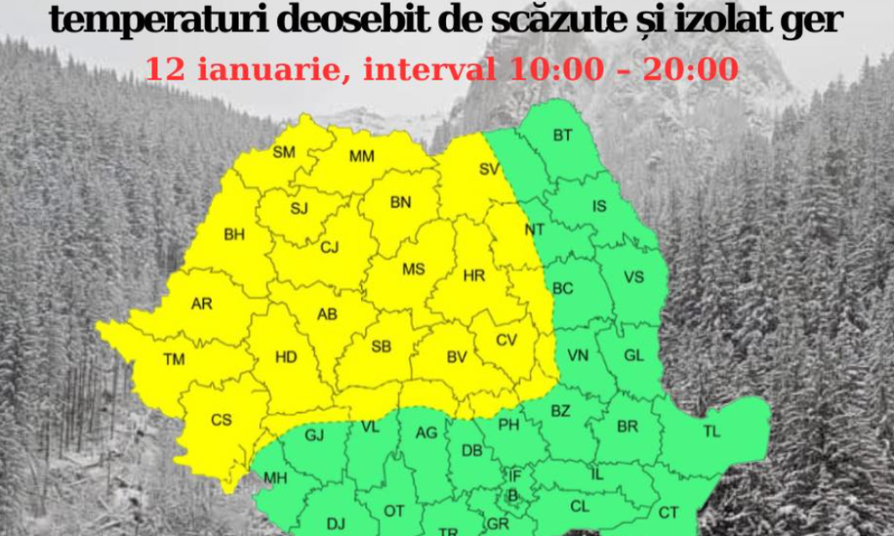 ATENȚIONARE METEOROLOGICĂ! COD GALBEN DE GER ÎN JUDEȚUL CLUJ Interval de valabilitate: 08 ianuarie, ora 20:00 – 09 ianuarie, ora 10:00Fenomene vizate:...