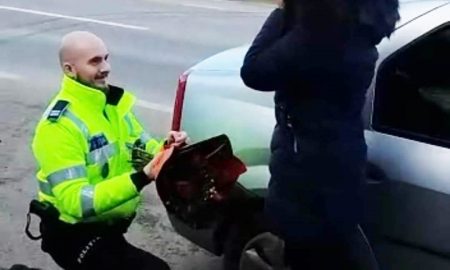 Un poliţist din Câmpia Turzii şi-a oprit iubita în trafic, a îngenuncheat şi a cerut-o în căsătorie