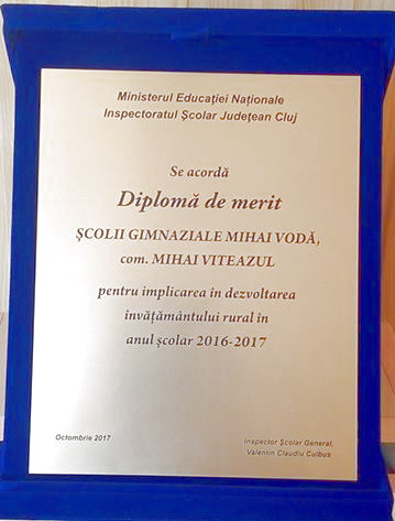În cadrul „Galei Excelenţei în educaţie”, desfăşurată în data de 2 octombrie 2017 la Casa de cultură a studenţilor din Cluj-Napoca, Şcoala Gimnazială „Mihai Vodă” din comuna Mihai Viteazu a obţinut pentru a doua oară Diploma de merit pentru implicarea în dezvoltarea învăţământului rural. La festivitatea de premiere, organizată de ISJ Cluj în colaborare cu Prefectura şi Consiliul judeţean Cluj au participat doamnele profesoare Arion Daniela Maria-directorul şcolii şi Gombasi Gabriela-director adjunct. În acelaşi cadru festiv doamna profesoară Farcaş Mihaiela şi elevele, Raţiu Andreea şi Vovea Mădălina au primit Diplomă de excelenţă pentru rezultatele deosebite obţinute la olimpiada naţională de ştiinţe socio-umane, 2016.