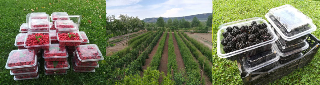 T.M: Zmeura este o plantă bianuală, într-un an crește firul productiv, înlemnește și produce, după care se usucă. Iar murele sunt un tonfree, un soi fără spini cu un bob mare, atât zmera cât și murele. Zmeura produce din 15 iunie în 15 iulie, iar murele din 15 iulie până la final de august, deci nu se intersectează culturile și perioada de recoltare, astfel ne putem ocupa de aceste culturi doar noi, familia, un grup mic de persoane.