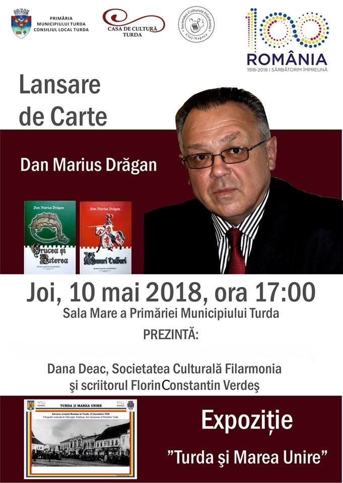 Primăria şi Consiliul Local al Municipiului Turda împreună cu Societatea Culturală Filarmonia şi Casa Municipală de Cultură Turda organizează Joi, 10 Mai 2018, de la orele 17, lansarea volumelor “Crucea şi Puterea” şi “Vremuri tulburi” purtând semnătura scriitorului clujean Dan Marius Drăgan. Epica celor două romane se sprijină pe cercetări ale cavalerismului românesc de secol XV și raporturilor dintre acesta și putere, construind astfel povești iscusit ticluite, presarate din belșug cu fapte istorice reale, unele dintre ele nedezvăluite încă și surprinzătoare.
