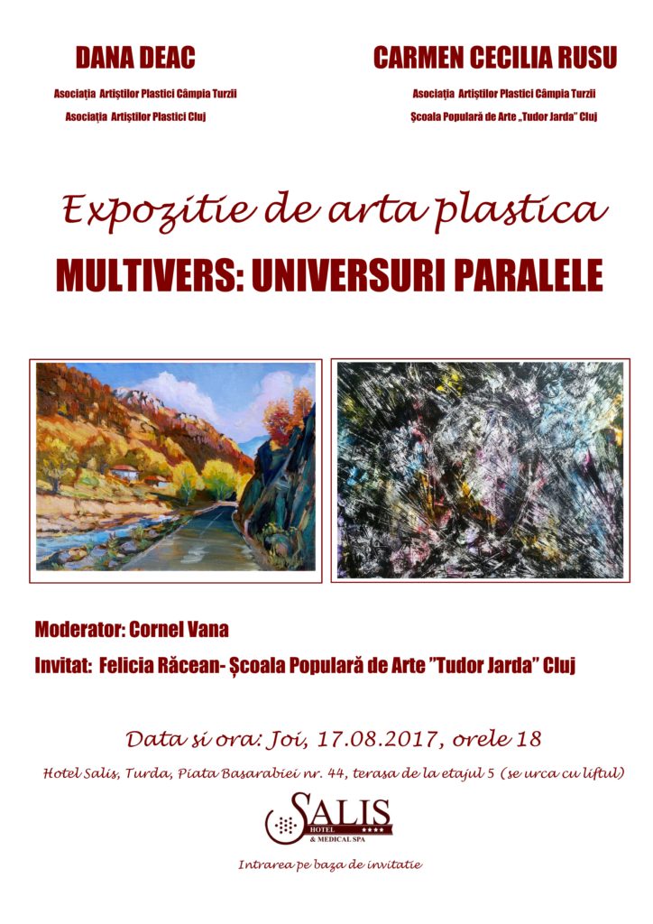 Dana Deac şi Carmen Cecilia Rusu organizează, Joi, 17 august 2017, expoziţia de pictură „Multivers- Universuri paralele”.