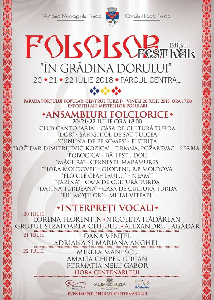 Din dorința de a susține și a promova cât mai mult autenticitatea poporului românesc, în perioada 20-22 iulie 2018, la Turda va debuta Festivalul de Folclor ” În grădina dorului”.