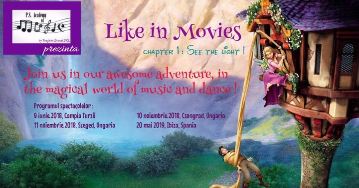 Vă invităm pe data de 9 iunie 2018, începând cu ora 17:00, la Casa de Cultură din Câmpia Turzii, în sala de spectacole Mircea Mihășan, la spectacolul “Like in Movies”, susținut de școala de canto PS Academy Baia Mare, în colaborare cu partenerii de la FeelGroove. Spectacolul se anunță a fi foarte special, pentru că în cadrul concertului vor cânta și cele două fete talentate din Câmpia Turzii, Ștefania Petric și Nora Tașnadi, care au fost cooptate în acest spectacol de către organizatori.