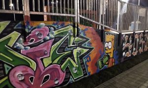 Sâmbătă, o trupă de tineri a desenat în graffiti toate suprafețele plane exterioare. Și-au lăsat imaginația să zboare și a ieșit ceva frumos.