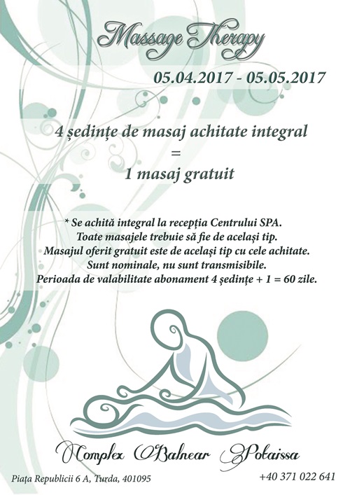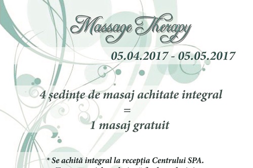 Dacă tot vorbim de relaxare, primăvara vine cu o ofertă de nerefuzat,începând cu data de 5 aprilie 2017 la 4 ședințe de masaj primiți o ședință gratuit.