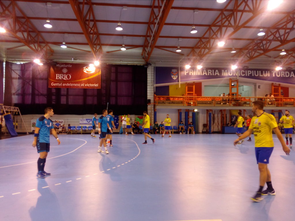 Cu trei minute înainte de finalul primei părţi, turdenii aveau un avans de 7 goluri, scor 16-9, şi au intrat la cabine cu acelaşi avans, scor 19-12.