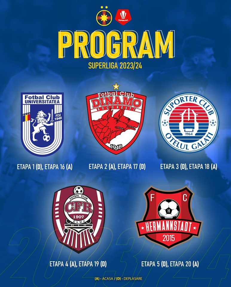 Marți, 27 iunie, Liga Profesionistă de Fotbal (LPF) a stabilit programul competițional din SuperLiga, ediția 2023-2024. Programul complet al sezonului regulat din ediția viitoare de Superliga!