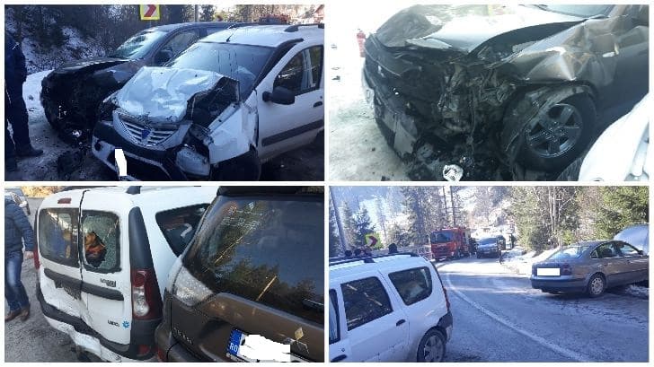În accident au fost implicate 3 autoturisme și 11 pasageri. 7 pasageri nu au nici un fel de problemă, iar 4 sunt cei 2 copii și 2 adulți transportați la CPU.