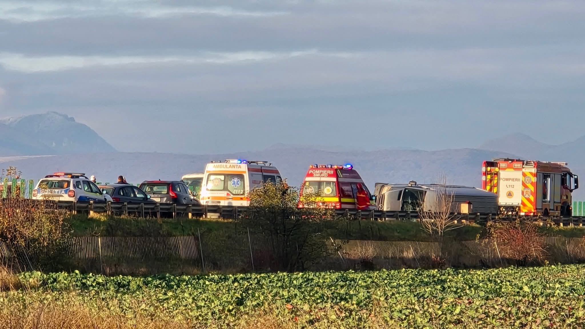 “Pompierii din cadrul Detașamentului Turda intervin în aceste momente la un accident rutier petrecut pe autostrada A3, în apropiere de municipiul Câmpia Turzii.