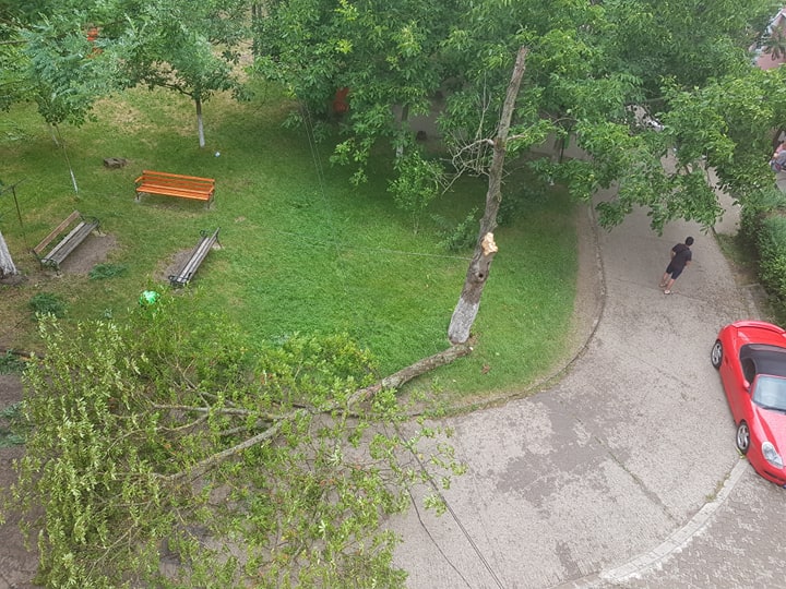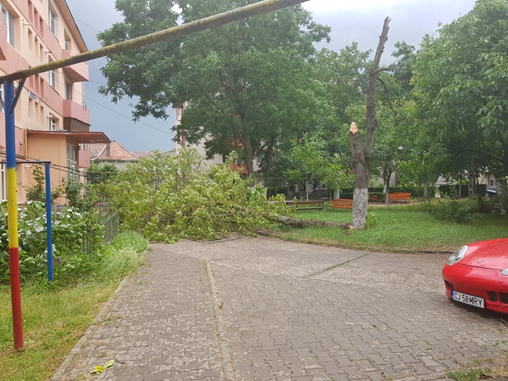 Puterea vijeliilor s-a resimțit și la Câmpia Turzii, unde chiar dacă a fost ferită de grindină, vântul puternic a rupt mai mulți copaci în oraș.