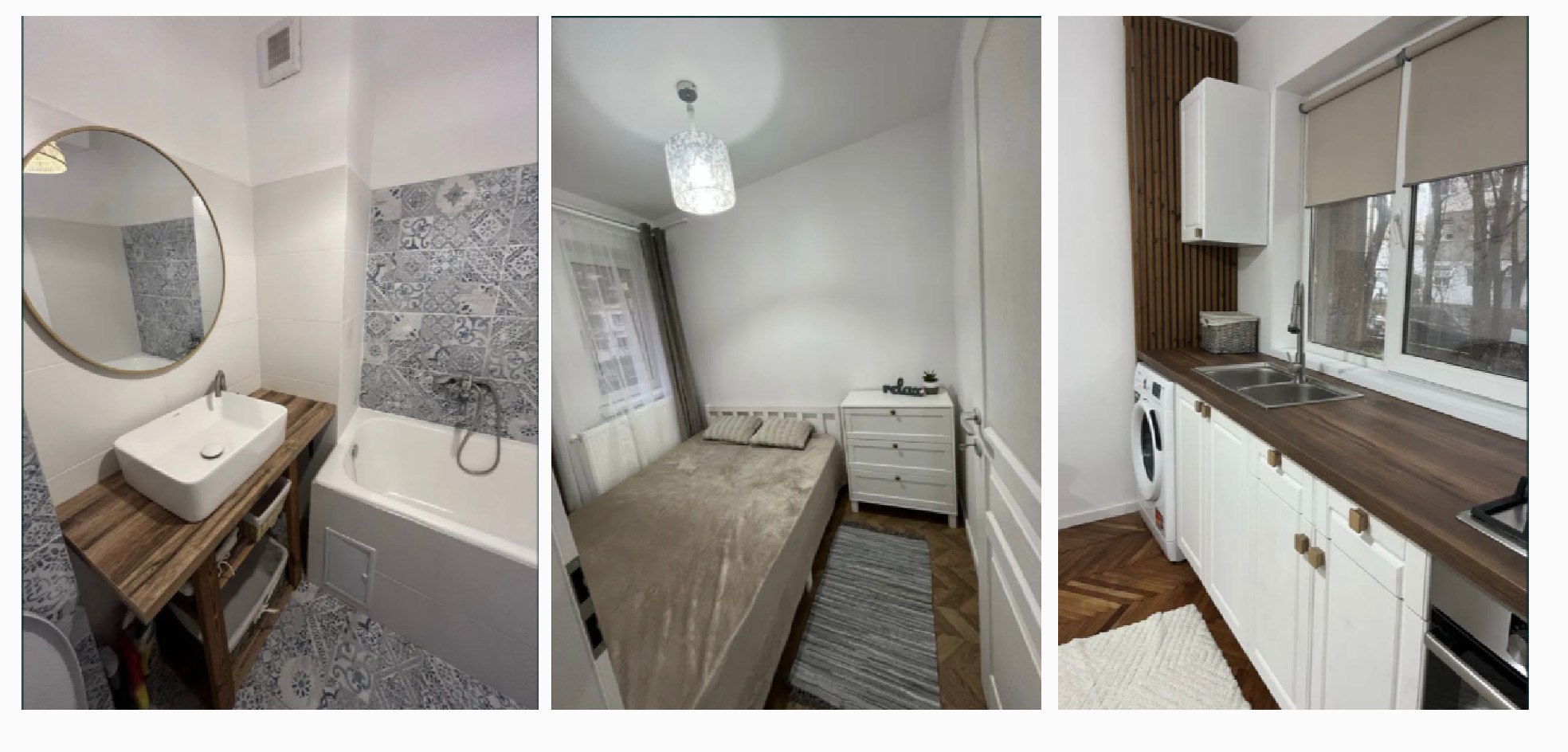 Dormitor separat, canapea extensibila nouă pe comandă, veselă nouă, oale noi, tăvi noi, aspirator.