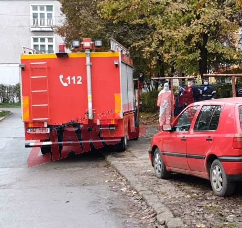 La fața locului se află și o ambulanță. Pompierilor li s-au oferit combinezoane de protecție, semn că persoană blocată în imobil ar putea fi infectată cu Covid 19.