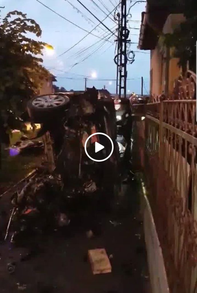 „Un Audi de CJ s-a rasturnat pe trotuar, e nevoie de descarcerare sa scoata oamenii din masina. In cealalta masina, o Skoda de NT, nu sunt victime, s-au declansat airbag-urile. Cel cu Audi nu a acordat prioritate, cu siguranta ambii aveau viteza mare… Audi a dat in bordura, s-a rasturnat, a indoit un gard, motorul ii era sarit afara. Daca erau pietoni pe trotuar era macel”, a relatat un martor citat de InTurda