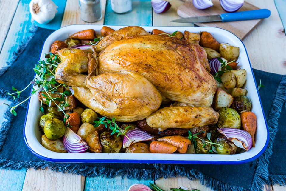 Puneti tava la cuptor si coaceti pana cand puiul este auriu si bine gatit in interior. Pentru a verifica, intepati cu un cutit intre piept si pulpa, iar dacă sucul care iese este transparent, atunci carnea este făcută.(temperatura interna trebuie sa fie de 75C)