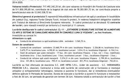 Compania de Apă Arieș S.A. continuă investițiile prin PROIECTUL REGIONAL DE DEZVOLTARE A INFRASTRUCTURII DE APĂ ȘI APĂ UZATĂ DIN REGIUNEA TURDA-CÂMPIA...