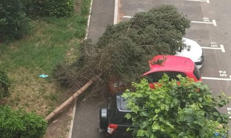 A fost Cod PORTOCALIU de furtună. La Turda un brad a căzut peste mașini.