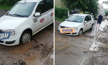 A rămas cu taxiul în groapă la Câmpia Turzii